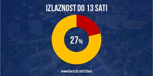 На локалним изборима у Бору до 14 часова је гласало 14.103 бирача, односно 32,59 одсто. 13.30 Излазност до 13 часова 27%