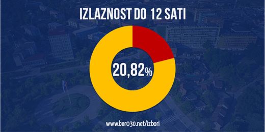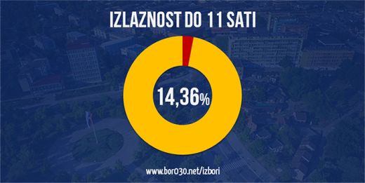 До поднева је у Бору гласало 9009 бирача, односно, 20,82%. Бирачка места се затварју за нешто мање од осам сати. Иначе, на гласачким листићима је дозвољено прецртавање и дописивање. Он се сматра важећим све док се једнозначно може утврдити за кога је бирач гласао. 11.30 Излазност до 11 часова је 14,36%