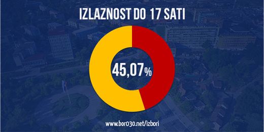 До 17 часова гласало је 45% грађана, односно 19.505% бирача, што је близу излазности на прошлогодишњим изборима прошле године. До краја изборног дана остало је око два и по сата. 15.15 До 15 часова гласало је више од трећине бирача