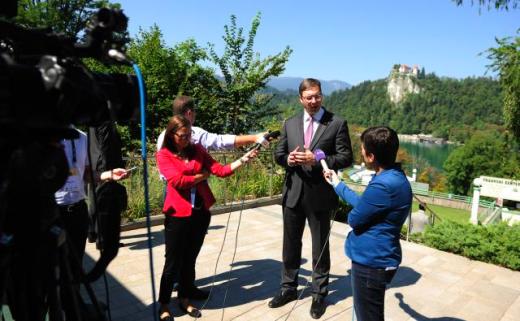 "Чекамо да се заврше избори. Искористићу прилику да изабраног премијера Хрватске одмах позовем. Што се мене тиче председници Хрватске и хрватске вледе увек су добродошли у Београд", подвукао је он. Упитан за иницијативу председнице Хрватске Грабар-Китаровић и њеног словеначког колеге Борута Пахора да се под хитно сазове седница ЕУ о југоисточној Европу због таласа избеглица, Вучић је казао да су такве иницијативе увек добродошле. "Сваки разговор је добар и благородан за све нас. Сваки пут када се сретнемо ми разговармао. И данас сам на кратко разговарао са хрватском председницом. Супер је када можемо да разговарамо, јер је то добро за све нас, спустиће тензије у региону које су нарасле због избора и комеморација различитих догађаја", објаснио је он. Српски премијер је подвукао да је време да више и чешће разговарамо, проблеме решавамо, а не гомиламо. Састанак Александра Вучића са Миром Цераром уочи форума на Бледу: Србија ће се према мигрантима и даље понашати као према људима у невољи БЛEД - Премиjер Србиjе Aлександар Вучић састао се данас на Бледу, пред почетак Стратешког фоума, са домаћином скупа, словеначким премиjером Mиром Цераром. "Пре форума на Бледу, сусрет са премиjером Словениjе и приjатељем Mиром Цераром", написао jе Вучић на свом Tвитер налогу. Хрватска агенциjа Хина преноси да се Церар састао и са председником Eвропског савета Доналдом Tуском и да jе главна тема била мигрантска криза. С тим у вези, Вучић jе новинарима казао да ће се Србиjа према мигрантима и избеглицама и даље понашати као према "људима у невољи", без обзира на финансиjске тешкоће, и да jе згрожен неким гласовима из опозициjе како би његова влада требало да се бави другим проблемима, а мигранте да протера, наводи Хина. Вучић jе уз то изрекао очекивање да ће Немачка подржавати брже укључивање Србиjе у EУ и давати подршку реформама, за коjе jе оценио да Србиjи до 2017. могу донети раст БДП-а између 2,5 и три одсто.