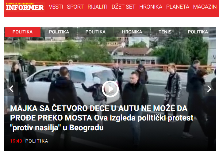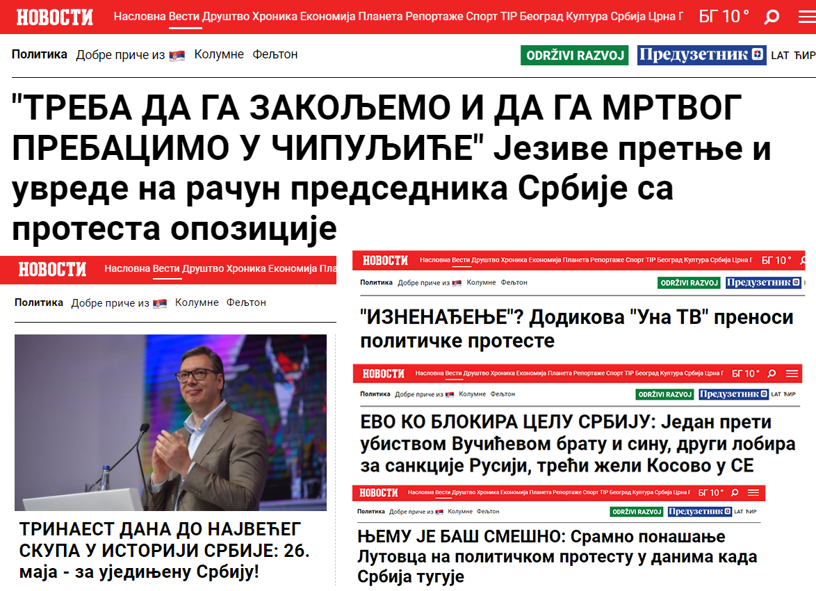 19.50 - Ђиласов кум прети председнику Вучићу Млађан Ђорђевић, Ђиласов кум, такође је на скупу који служи малтретирању грађана 19.38 - Ђиласова новинарка преузле кормило Уместо да се објективно извештава, како свакодневно тврди да ради, Жаклина Таталовић новинарка Н1, сада предводи протест опозиције у Београду. Loading... 19.34 - Насрћу једни на друге Блокирали су Газелу, зауставили саобраћај и део међународног пута, малтретирају грађане, али кренули су да се обрачунавају и међусобно. 19.33 - Олош предводи протест опозиције Три добро познате фаце на челу су скупа опозиције у Београду.