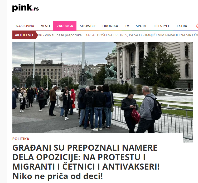 19.09 - Насилници на "Протесту против насиља" На такозвани "Протест против насиља" опозције дошао је и Драган Бјелогрлић, још један лажни борац против насиља. Против Бјелогрлића се тренутно води кривични поступак због бруталног пребијања Гаге Антонијевића. 19.07 - И Ћута на протесту опозиције Александар Јовановић Ћута дошао је на протест опозиције у Београду.