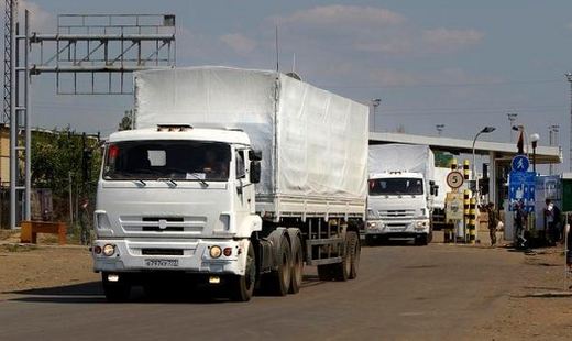 Камиони натоварени водом, генераторима и врећама за спавање намењени су цивилима у граду Луганску, где се проруски сепаратистички борци опкољени владиним снагама. Гранатирање града траје већ недељама, а ниједна страна не прихвата прекид ватре.