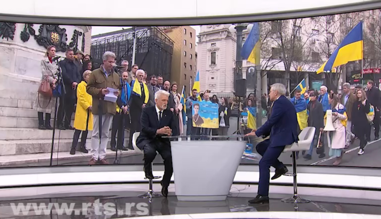 Амбасадор Украјине у Србији Володимир Толкач рекао је за РТС да се много грађана придружило "Маршу солидарности са Украјином" у Београду, да је то било велико изненађење за њега, као и да је то оставило одличан утисак за будућност. Наводи да је Украјина захвална Србији на пруженој помоћи, као и да Кијев остаје при принципијелном ставу да неће признати независност Косова.